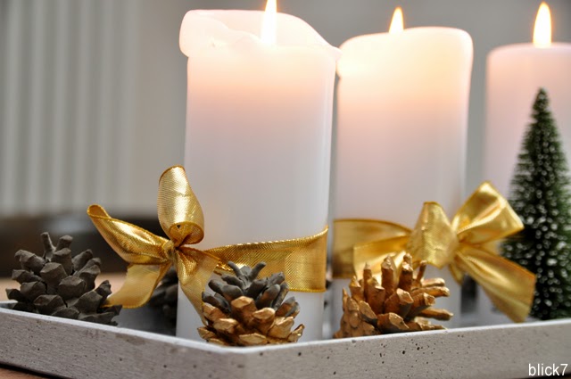 Um sie ein wenig festlicher zu gestalteten, habe ich sie teilweise gold angesprüht. Mal komplett, mal nur unten [oder ist das oben?]. Sie dürfen dieses Jahr noch im Wohnzimmer bleiben, ich werde sie aber wohl nicht für nächstes Jahr aufheben. Echte Tannenzapfen sind mir dann doch viel lieber.